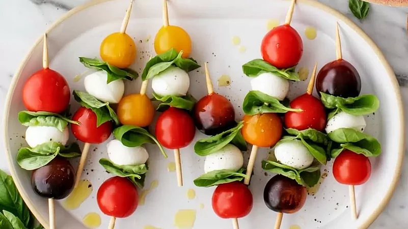For a refreshing and visually appealing option, whip up some Caprese Skewers. Alternate cherry tomatoes, mozzarella balls, and fresh basil leaves on toothpicks, and drizzle them with balsamic glaze.