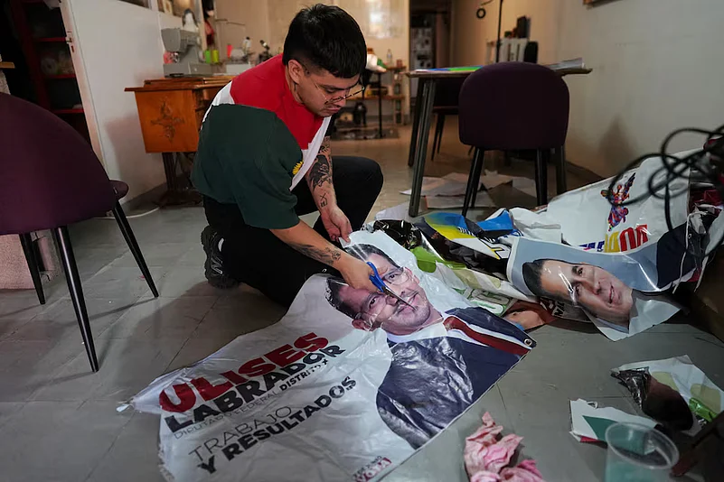 And interestingly, his latest creation involves repurposing vinyl political advertisements from Mexico's recent local, state, and federal elections, which took place on Sunday. Among the election's notable outcomes was Claudia Sheinbaum's historic win, making her the first woman president of Mexico.
