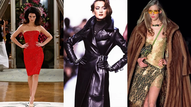 Runway collections from the likes of Galliano, Alaïa, Schiaparelli spring/summer 2024 and Roberto Cavalli in the late '90s and early 2000s showcased elements reminiscent of the Mob Wife, from zebra stripes to leopard prints, bouffants, and gargantuan coats.