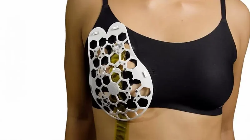 The scanner is a stretchy patch that fastens to a bra and lets the user move an ultrasound tracker along the patch to view the breast tissue from various perspectives. Doctors can then examine the photos to search for indications of cancer.