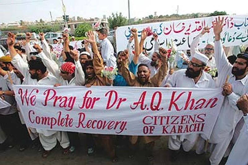 Another reason for support for Khan could be that few here believe that he didn't have the establishment's support for proliferation. As Farhatullah Babar, spokesperson for the Pakistan People's Party, told Outlook, "Khan could not have possibly acted alone. It is unfair to single him out and make him a scapegoat. This issue will resurrect time and again in the absence of a bipartisan probe." When the proliferation scandal was made public, Babar says the PPP had demanded a bi-partisan probe in the National Assembly. "We moved an adjournment motion and several resolutions on the issue. But, unfortunately, these were never accepted by the Speaker. We could not debate the matter," he adds.