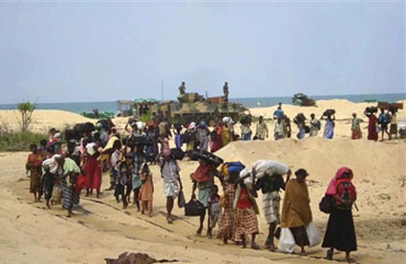 The Liberation Tigers of Tamil Eelam (LTTE) is in its death rattle. It wasdecisively defeated by the Sri Lankan Armed Forces weeks ago, but a handful ofits leadership headed by Prabhakaran has cynically and cruelly prolonged theagony of the Tamil civilians by using them as a buffer and human-shield in orderto delay the re-establishment of the writ of the Sri Lankan government in aminiscule piece of territory (about 20 sq.kms), which has been declared by the governmentas a no-fire zone to avoid collateral casualties among the civilians still underthe control of the LTTE and to enable them to escape from the clutches of theLTTE.