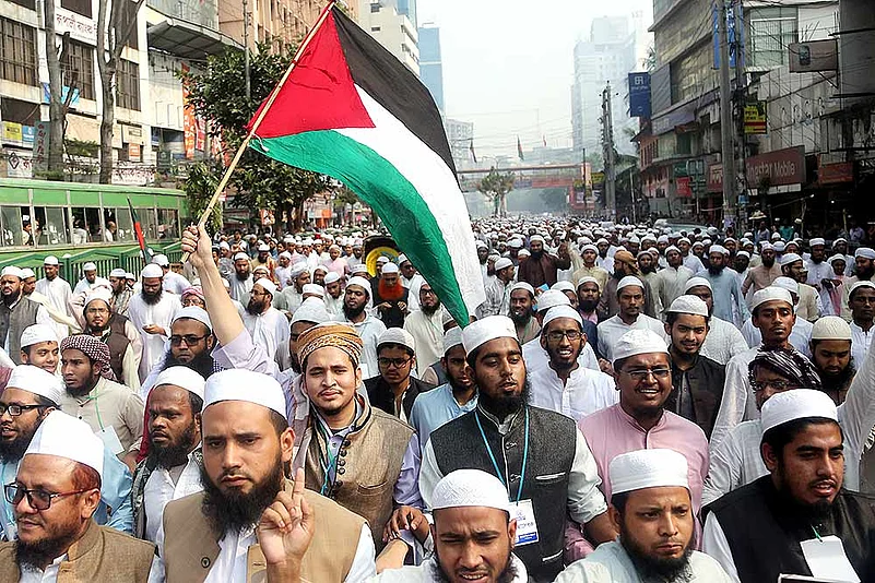 The Hefazat claims to be a pressure-group of madrassa teachers and students that was formed in Chittagong in 2010, ostensibly with Saudi funds. As the organisation with its network of madrasas spread, close links were formed with the Jamaat-e-Islami. It became apparent during the Shahbagh Movement of 2013 that spearheaded the move to build a national opinion for executing top Jamaat leaders for alleged “war crimes”. With Jamaat on the backfoot, Hefazat members mobilised thousands of its students and teachers. With a rallying cry of ‘Islam under threat’, it laid siege to Dhaka. It was broken after a bloody crackdown by security forces, leading to bloodshed and loss of life.