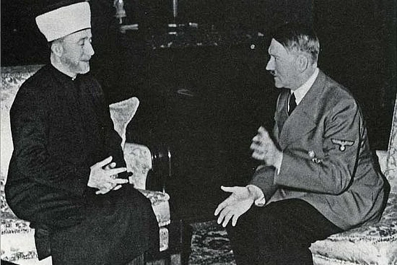 It seems that the Italians were not too keen on having Hajj Amin around, so the Mufti moved to Nazi Germany. At the time, the SS was trying to enlist Muslim volunteers for the war against Russia, and somebody had the bright idea that a picture of the Grand Mufti with Hitler might be useful.