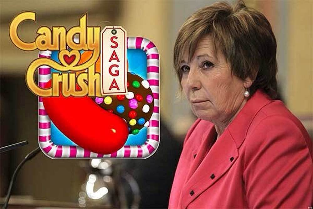 Spanish Vice President of the Congress of Deputies Celia Villalobos was seen crushing some candies on her tablet computer as she played Candy Crush while the President was giving an important speech.