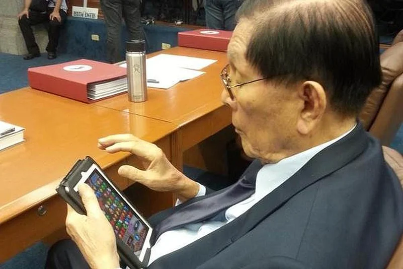 The most hilarious was the case of 91-year-old Philippine senator Juan Ponce Enrile who kept playing Bejeweled with rapt attention while Miriam called him a murdered, plunderer and womanizer in the Senate.