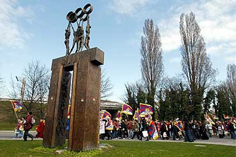Certainly, European public opinion is turning distinctly anti-China. The Olympictorch relay through Europe in early April sparked protests in Olympia, Londonand Paris, with protesters condemning China's occupation of Tibet, oppressivemedia censorship, the jailing of dissidents and human rights activists, Darfurand other causes.