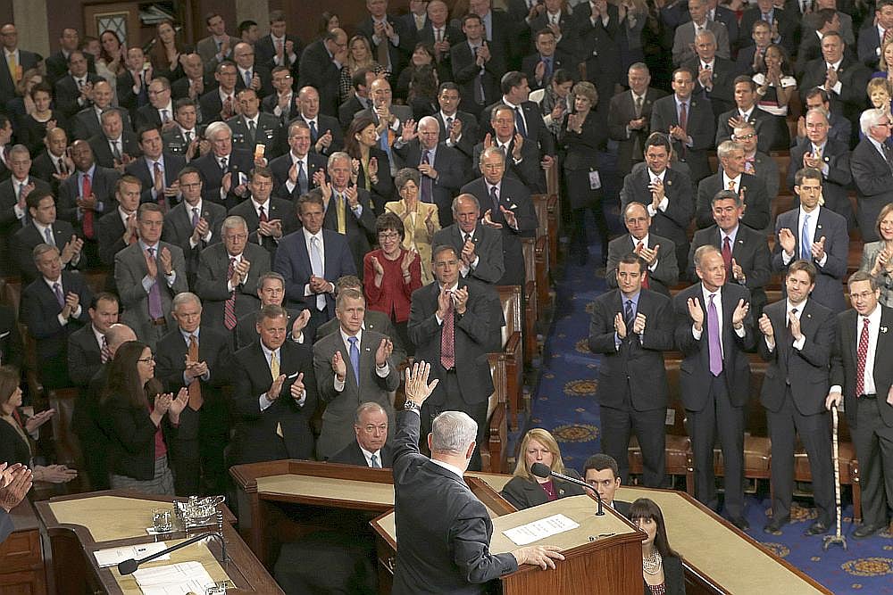 I was watching The Speech by Binyamin Netanyahu before the Congress of the United States. Row upon row of men in suits (and the occasional woman), jumping up and down, up and down, applauding wildly, shouting approval.