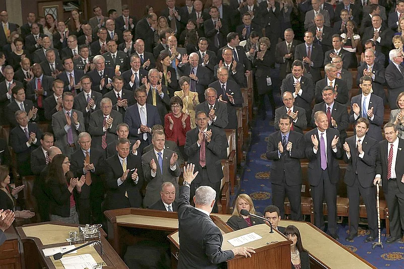 Of course, the Congress of the United States of America is no Reichstag. Members wear dark suits, not brown shirts. They do not shout "Heil" but something unintelligible. Yet the sound of the shouting had the same effect. Rather shocking.