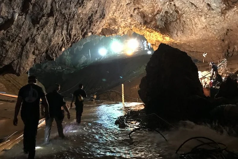 Cave Three is about two km from the entrance of the cave network and is the base for Thai rescuers.