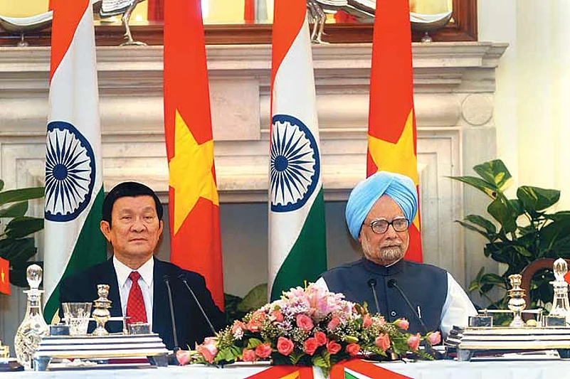 China’s rise may have emboldened Pakistan, but it’s perhaps just the reverse for Vietnam—it has long felt nervous and vulnerable about Beijing’s hegemonic tendencies in the South China Sea. Last month, Vietnam’s decision to enter into a joint oil exploration project with India in the South China Sea was contested by Beijing, which claims ownership of much of the resources there. No wonder, Vietnam and India have begun to increasingly view each other as strategic partners who are synchronising their steps across many domains—from economic cooperation and trade to capacity building, defence and security. With Vietnamese president Sang by his side, Prime Minister Manmohan Singh harped on the need for the two countries to keep the sea-lanes free and secure.