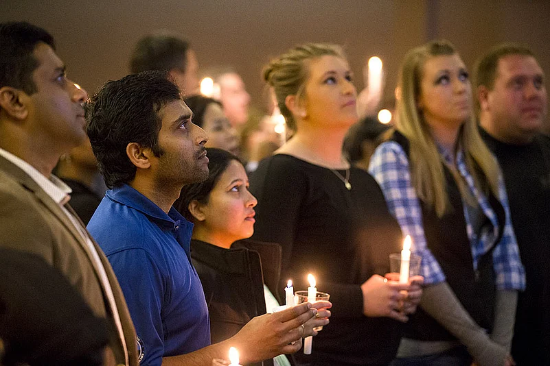 Chillara, too, is a community leader, presiding over the India Association of Kansas City. She heard the news the morning after, when a colleague who had visited the bar to help out following the shooting informed her. She later met with Madasani’s wife to offer support. Her association also organised a peace march and vigil on February 26. Speakers included friends of the victims as well as political leaders and administrative officials. Priests from multiple religions offered prayers.