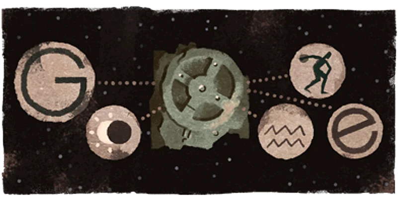 But what has intrigued subsequent generations the most is a mysterious artefact salvaged from among the 2000 year old treasure trove — an amalgamation of brass gears and dials mounted in a case the size of a mantel clock. It was dubbed the ‘Antikythera Mechanism’ by scientists and it is this mysterious mechanism that is being celebrated today with a Google Doodle.