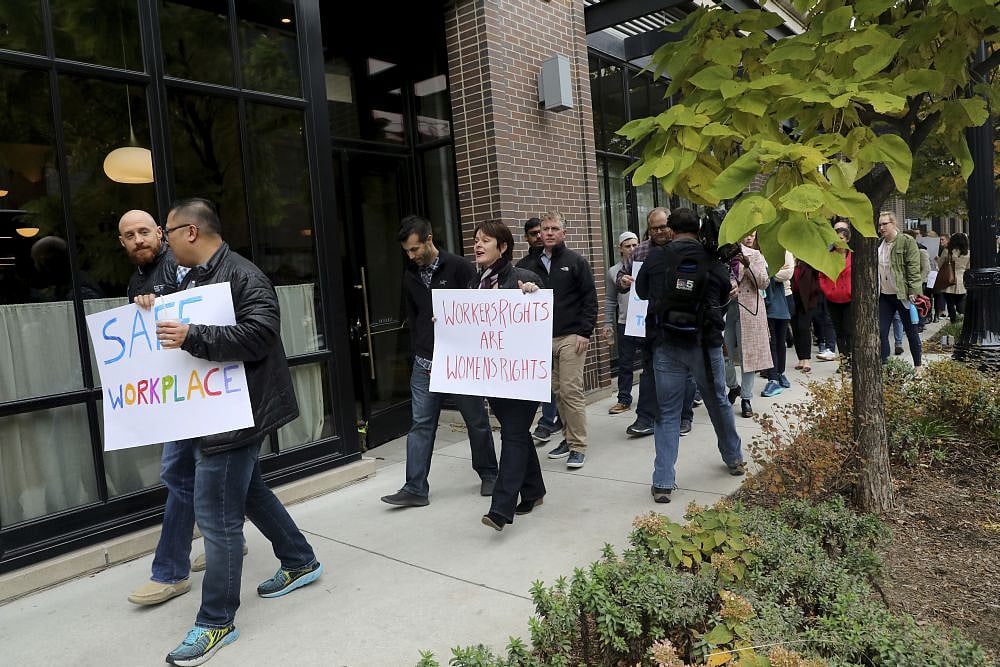 The protesters said that they've heard stories of sexual exploitation for a long time and wanted to see actions taken along with real changes at their workplace.