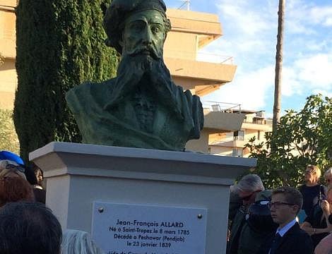 The story behind the event: General Jean-Francois Allard (1785-1839), one of Napoleon’s officers, entered the service of Ranjit Singh in 1822 and rose to command the European officers in the maharaja’s court. He trained the maharaja’s army to be the finest in the land. While in Punjab, Allard fell in love with Bannu Pan Dei and got married to her. In 1834, perhaps afraid that his wife would have to commit sati if he died while in Punjab, he got permission to take her to St Tropez. However, Allard had to return to service to the Punjab court. In 1839, he fell ill and died, six months before the Maharaja and was buried in Lahore. Meanwhile, Bannu Pan Dei remained in St Tropez. She converted to Catholicism in 1841, living in the huge house built by Allard in the town centre. She died in January 1884 and is buried in a cemetery just outside the town, overlooking the sea. Her descendants still live there and were the active organisers of the event.