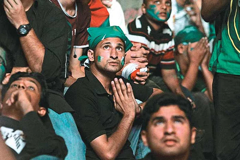 The fervour in Pakistan was unprecedented—tribesmen in Pakistan’s restive N. Waziristan were seen cleaning their guns for celebratory firing; giant screens had been mounted at Lahore’s Gaddafi stadium, so also in the parks and food streets of Rawalpindi and other cities; and cinema halls were telecasting the match alive. “Lala Chumma,” the crowds roared each time Afridi, who’s affectionately called Lala, appeared on the giant screen. And mind you, all this in a country where people are apprehensive of crowded places, which have often become the target of suicide bombers.