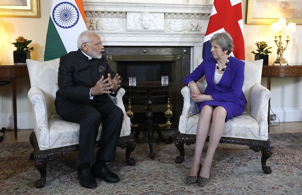 "Very welcome to London, Prime Minister," May said as she greeted Modi, who arrived in a Tata Motors' Range Rover.