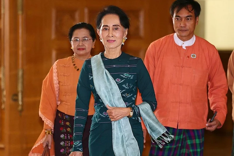 "Together both countries will ensure that terror is not allowed to take roots in our country," de-facto leader Aung San Suu Kyi said.