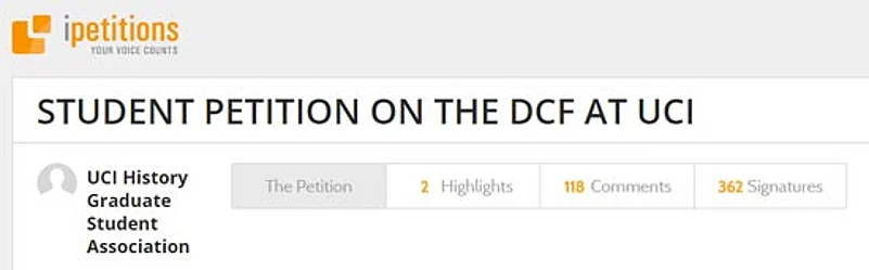 The petition, which has over 350 signatures, also charges DCF with making “threats, implicit or explicit, to faculty, staff and the academic community at large”. Viswanathan admitted to “attempts by our board to reach one doctor Chaturvedi, but in a fund-raising context”. He is referring to the father of Vinayak Chaturvedi, an associate professor of history at UCI.