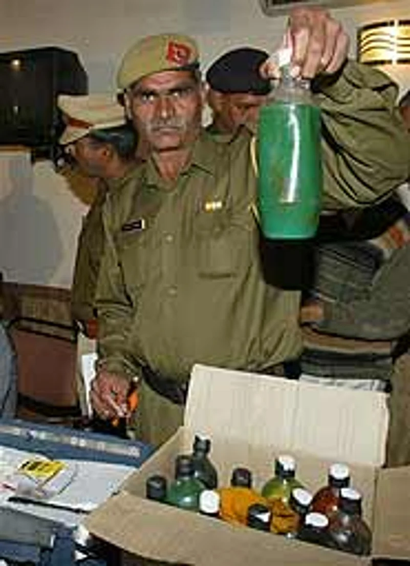 Police are also appealing to the public at large for help in unravelling thecase, seeking information from anyone who may have seen, sold or manufacturedthe plastic bottles. "We believe about 50 bottles were purchased at one time,"IG Kumar said. A Pakistani national identified as Usman Mohammed, a resident of Karachi,is helping the investigators. "He is one of the eyewitnesses and he is helping us,"IG Kumar said.