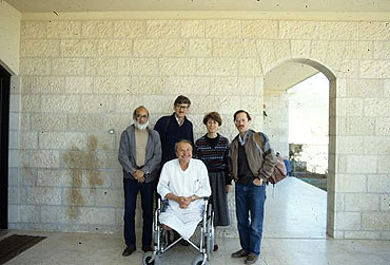 The mayor of Nablus, Bassam Abu Shakar with the author from the left, two colleagues (Rashid Khalidi and Ralph Austen) and the mayor's wife.