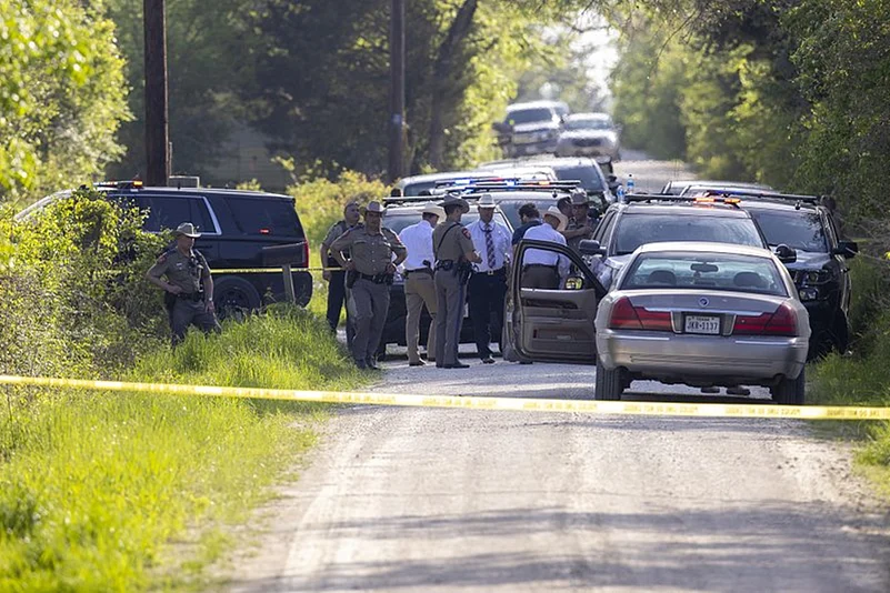 One person was killed and five people were wounded in the wake of a shooting at a cabinet-making business in Bryan, Texas, authorities said, and a state trooper was later shot during a manhunt that resulted in the suspected shooter being taken into custody.