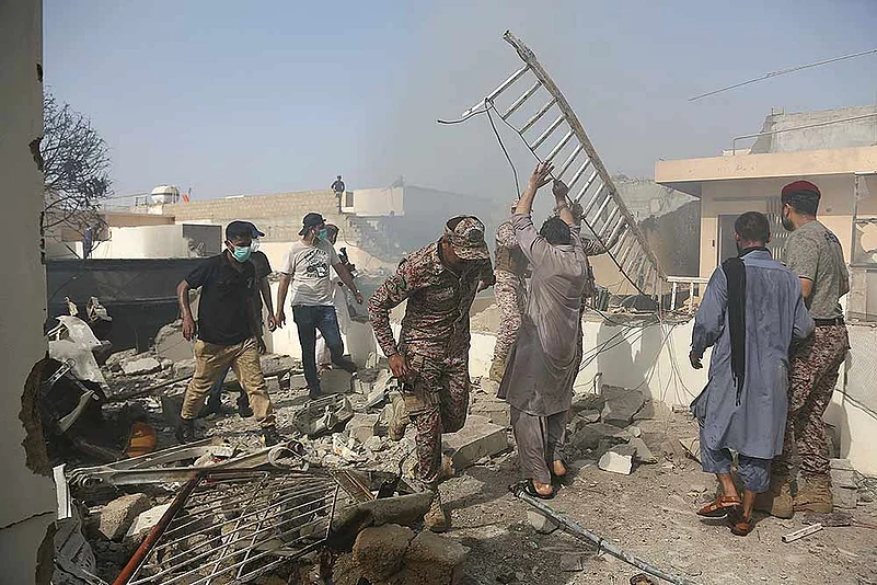 Ninety-seven people were killed and two passengers miraculously survived a deadly crash after a Pakistan International Airlines plane with 99 travellers on board plunged into a densely populated residential area near the Jinnah International Airport here, officials said on Saturday.