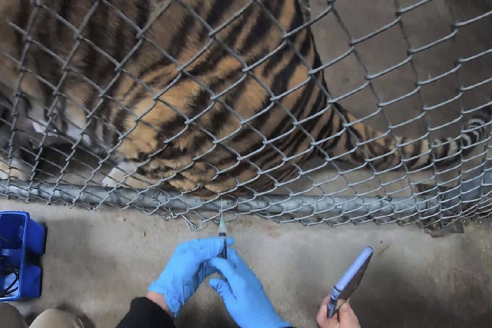 Tigers Ginger and Molly were the first two animals at the Oakland Zoo to get the vaccine this week, the San Francisco Chronicle reported Saturday. The doses were donated and developed by veterinary pharmaceutical company Zoetis in New Jersey.