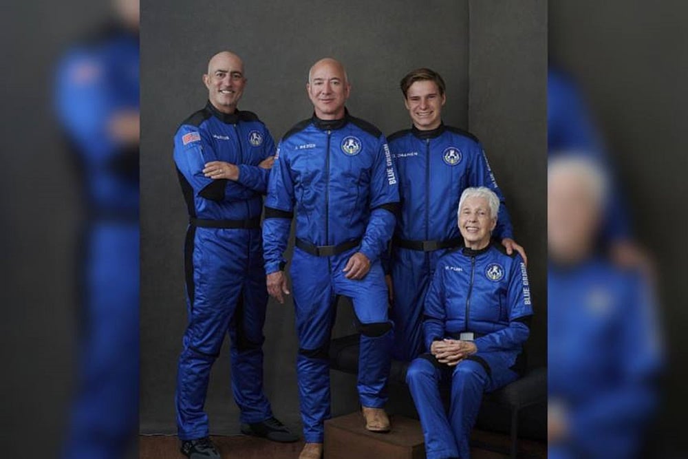 The Amazon founder was accompanied by a hand-picked group: his brother, an 18-year-old from the Netherlands and an 82-year-old aviation pioneer from Texas — the youngest and oldest to ever fly in space.
