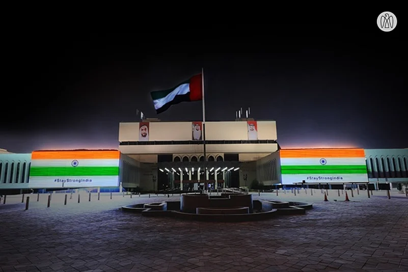 Landmark buildings in the United Arab Emirates (UAE) illuminated with the Tricolour to show solidarity with the country amid a massive surge in Covid-19 cases in India. The world's tallest building, Burj Khalifa, in Dubai and the Adnoc headquarters in Abu Dhabi were lit up with the Indian flag as well as the message "Stay Strong India" on Sunday night.