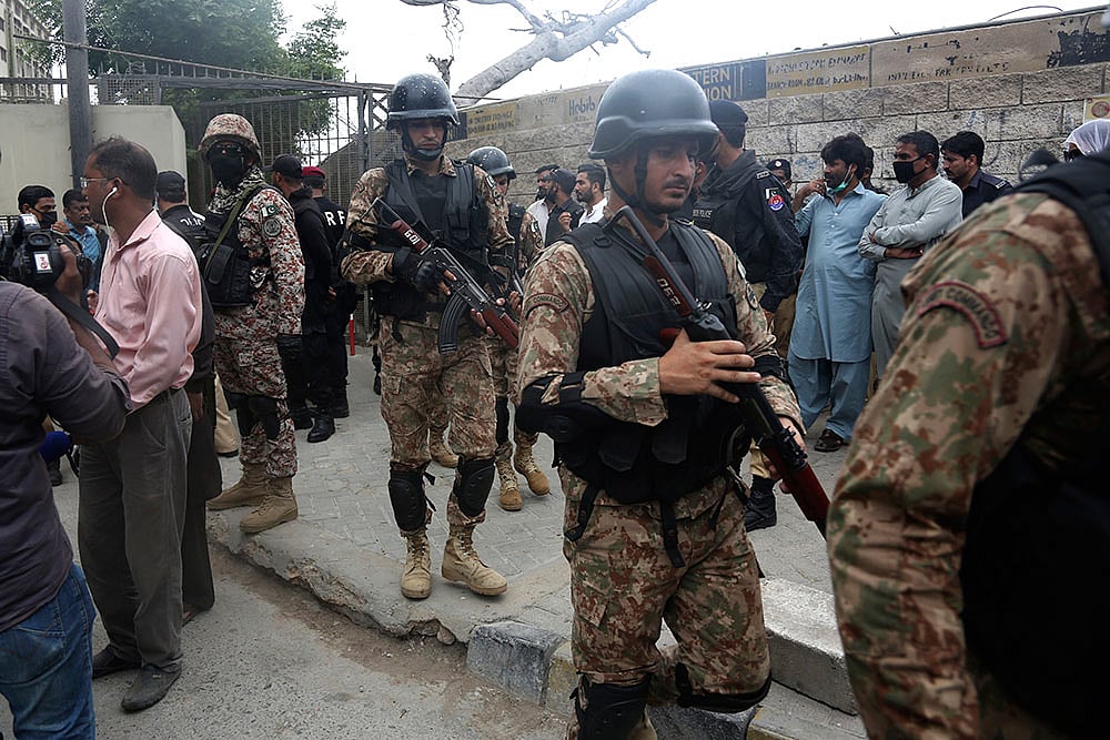 The police and Rangers' officials arrived at the scene and killed all the four terrorists near the entrance gates, Sindh Rangers said.