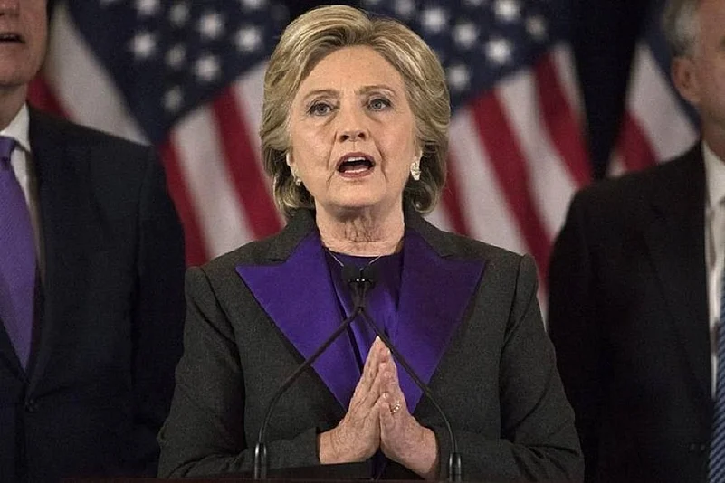 The message carried a smiling photo of Clinton which she tweeted on November 9, 2016, after losing to then-Republican candidate Trump.
