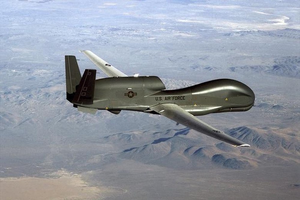 The RQ-4 Global Hawk unmanned aircraft system (UAS) can fly at high altitudes for more than 30 hours, gathering near-real-time, high-resolution imagery of large areas of land in all types of weather, maker Northrop Grumman says on its website.