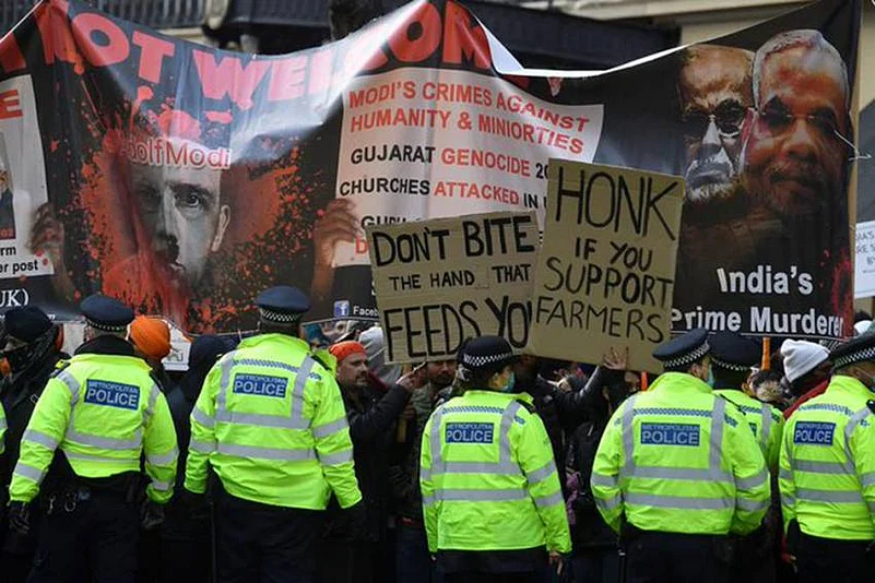 However, the peaceful protest was soon hijacked by the separatist Sikhs who were carrying Khalistani flags with anti-India posters and banners which said they represent “The Republic of Khalistan”.