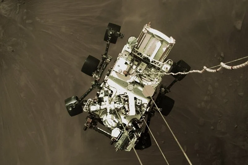 Another added touch not widely known until touchdown: Perseverance bears a plaque depicting all five of NASA's Mars rovers in increasing size over the years — similar to the family car decals seen on Earth.