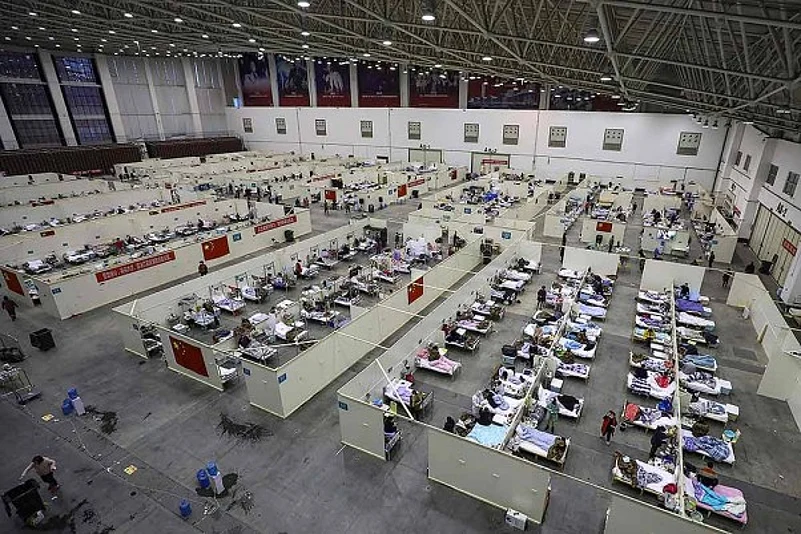 Rows of prefabricated houses can be seen. The official People's Daily newspaper said more than 600 rooms were ready by Jan 19. Another 3,600 are to be added by the time of completion.