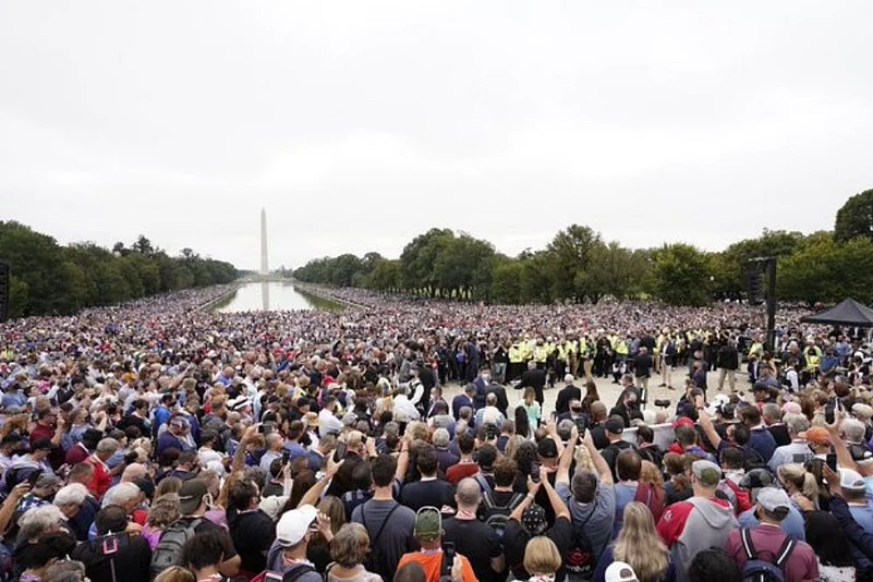 Thousands of people packed the National Mall in downtown Washington on Saturday to pray and show their support for President Donald Trump.