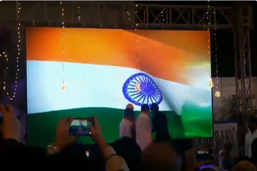 The video shows children dancing to the song "phir bhi dil hai Hindustani" (the heart is Indian). The screen in the background showed the Indian flag. The event was said to organised to depict the culture of various nationalities.