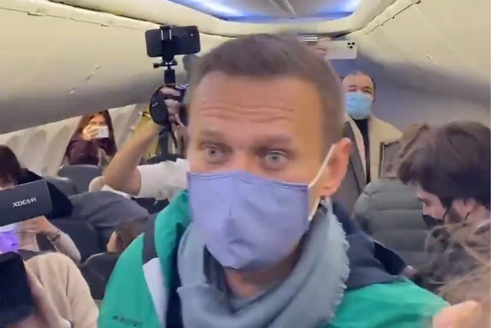 Navalny, 44, who is President Vladimir Putins most prominent and determined foe, brushed off concerns about arrest as he boarded the plane in Berlin.