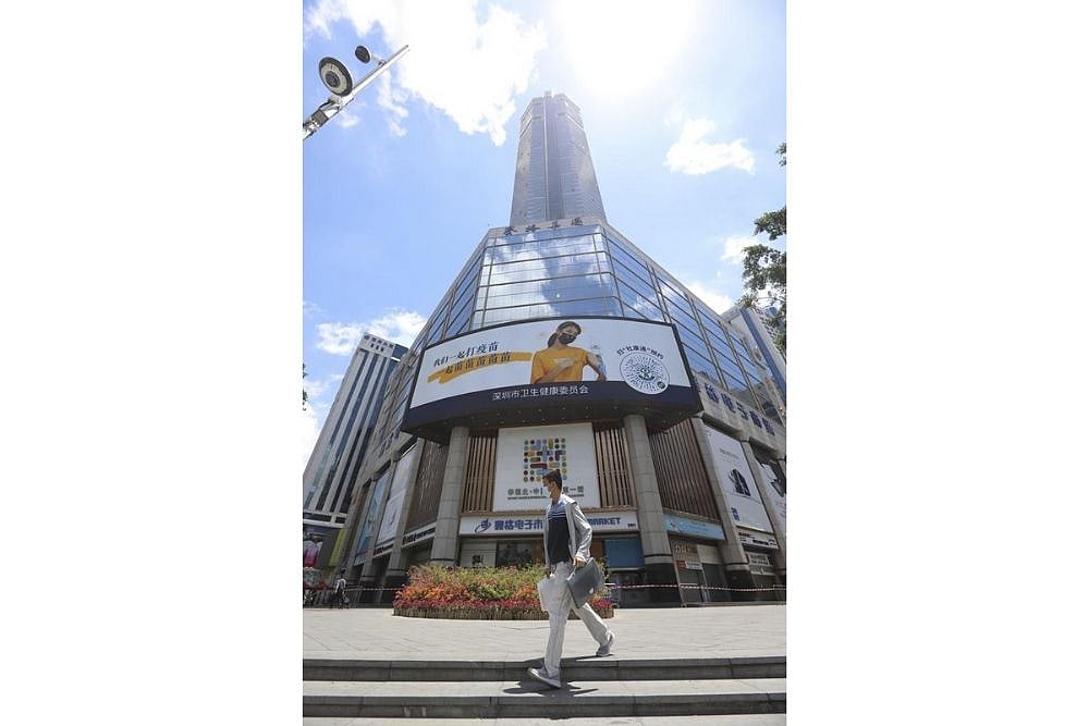 The building's first 10 floors are an electronics market and office space takes up most of the rest, topping out at more than 300 metres (about 1,000 feet) tall with a helipad on its roof.