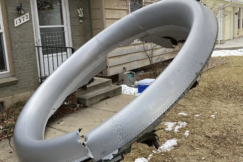 Debris from a United Airlines plane fell onto Denver suburbs during an emergency landing Sunday after one of its engines suffered a catastrophic failure and rained pieces of the engine casing on a neighborhood where it narrowly missed a home.