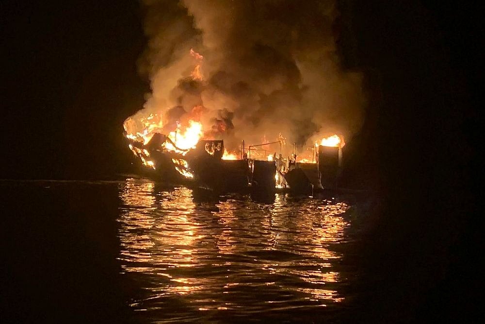 The 75-foot (23 meters) Conception was on a three-day excursion to the chain of rugged, wind-swept isles that form Channel Islands National Park in the Pacific Ocean. The fire broke out around 3 a.m. in Platt's Harbor off Santa Cruz Island.