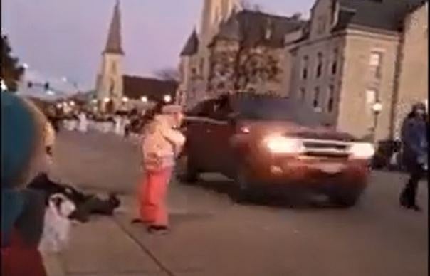 Another video shows a young child dancing in the street as the SUV speeds by, just a few feet from her, before it hurtles into parade participants a few hundred feet ahead. One video, of dancers with pompoms, ends with a group of people tending to a girl on the ground.