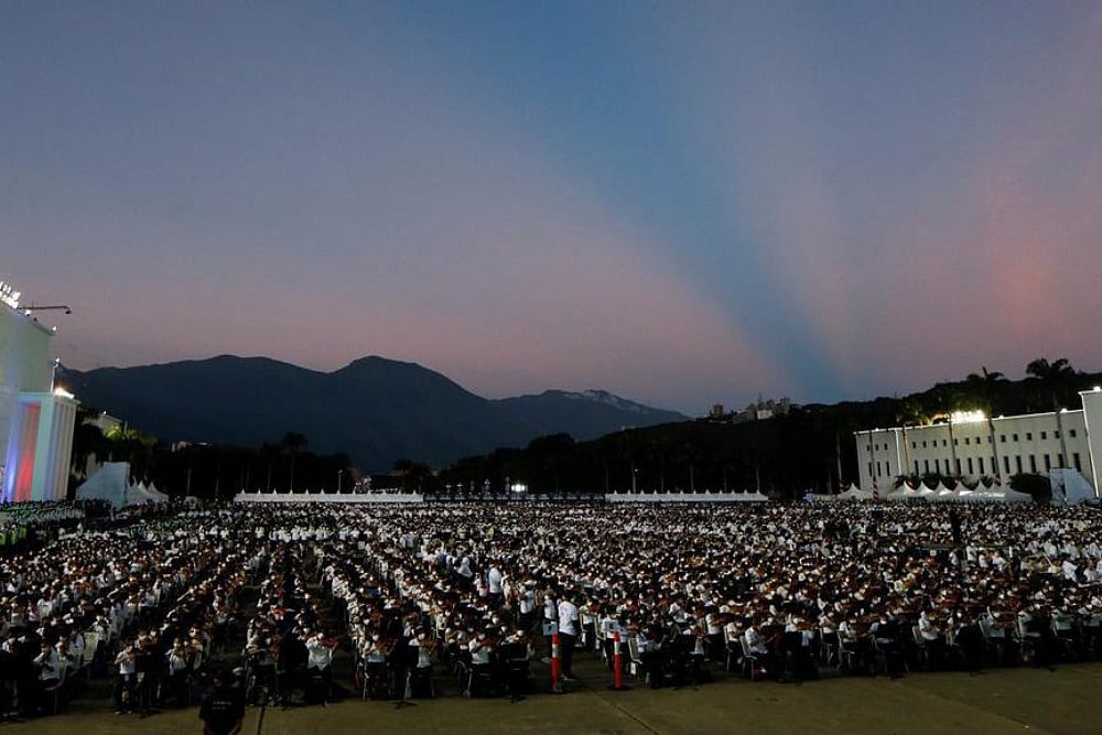 The network of orchestras known as El Sistema, or The System, assembled some 12,000 musicians for the concert. The repertoire included “Venezuela” by Pablo Herrero and Jose Luis Armenteros, the South American country's national anthem and Pedro Gutierrez's “Alma Llanera”, which Venezuelans consider their unofficial anthem.