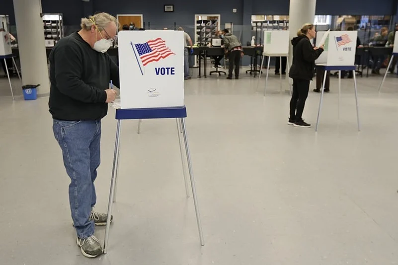 No person “shall distribute, wear, or post at a polling place any campaign material,” according to state law. People who are convicted can be fined as much as $1,000.