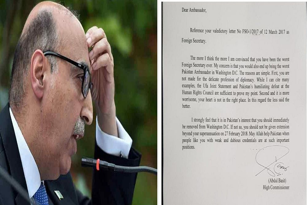 Former Pakistan high commissioner to India Abdul Basit sent an official letter to Islamabad's ambassador to the United States Aizaz Ahmad Chaudhry, pointing out to him that he was "the worst foreign secretary ever."
