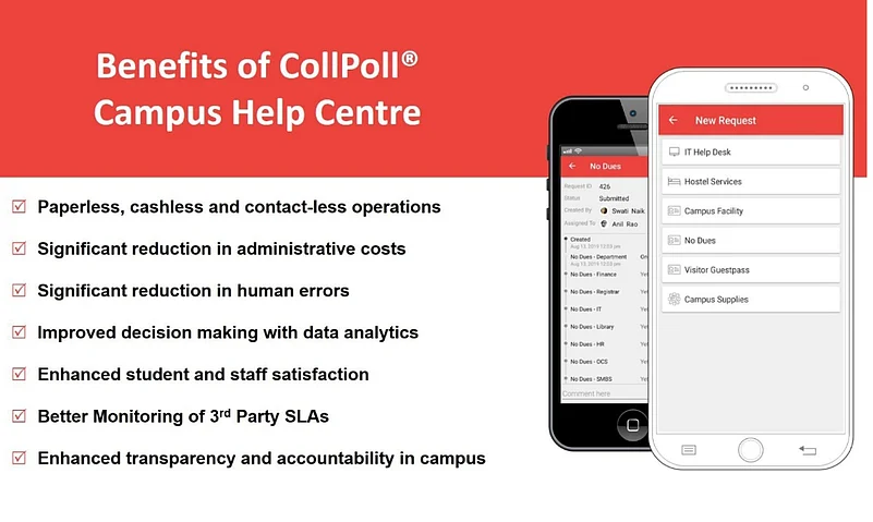 CollPoll, a Bangalore-based Edutech company, has devised a Campus Help Centre (CHC) which integrates all workflows into a single web and mobile platform, or a virtual workplace where institutional stakeholders have access to the workflows relevant to them. CHC provides a self-service portal that enables users to raise any type of pre-designed service request. Once requests are raised, they are routed to the appropriate service administrators based on predetermined campus policies. Thereafter, all actions related to the request are automatically tracked with complete visibility to the relevant users.