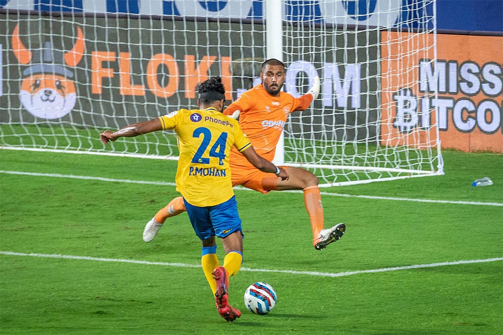 Kerala continued to have the upper hand as Thoiba Singh was booked for a challenge on Luna. Against the run of play, Javi Hernandez almost scored with a long-range effort after spotting Albino Gomes standing well outside his line.