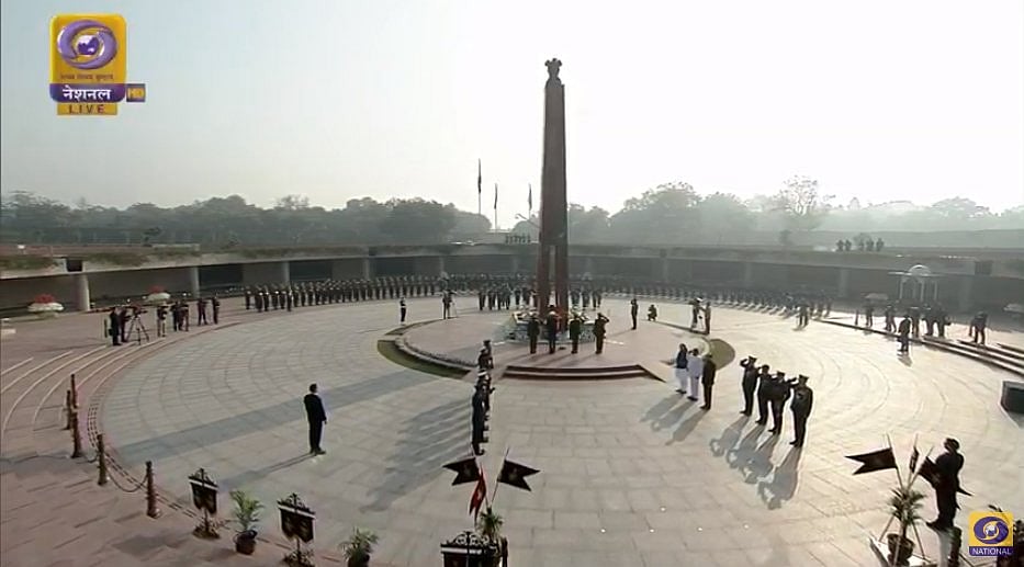 Prime Minister Narendra Modi on Sunday paid homage to the fallen soldiers at the newly-built National War Memorial on the Republic Day for the first time instead of the Amar Jawan Jyoti beneath the India Gate arch.