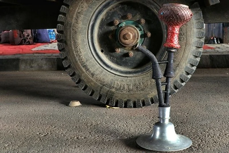 The site of farmers ongoing agitation over the new farm laws, at Ghazipur border in New Delhi.